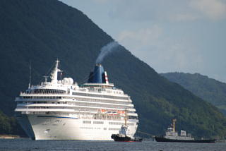 タグボートの力を借りながら,ゆっくりとその巨体が近づいてくる.