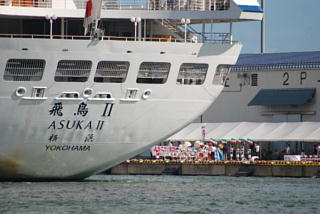 9月6日午前8時過ぎに飛鳥Uが舞鶴湾にその雄姿をあらわした.紀伊半島に甚大な被害をもたらした台風12号が去って,さわやかな秋晴れの中を舞鶴西港第2埠頭への入港となった.入港は5年連続,6回目.