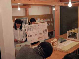 建設システム工学科2年(4名)、4年生(3名)は、デザコンで取り組んだ3作品の取り組みに関して、協力者である商店街関係者や市民に報告を行いました。舞鶴市八島商店街にある舞鶴高専のサテライトラボ「よろず」を会場に報告会は行われました。商店街関係者、市民、市役所職員、各社新聞社等が参加しました。今後実践的に進める為の意見交換を行い、具体的な方法なども話し合いました。学生たちは今後も引き続き取り組むことを発表することが出来、市民の協力を得る良い機会となりました。