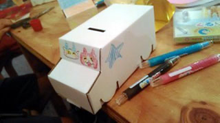 平成28年7月23日(土)、舞鶴市内の八島商店街で開催されたイベント「はまっこ夜の市」において、加登准教授によるワークショップ「ダンボールであそんで防災について学ぼう」を実施しました。場所は、商店街にある舞鶴工業高等専門学校のサテライトラボ「よろず」を使用しました。この公開講座は、工作を通してものづくりの楽しさや防災について学んでもらうことを目的とするもので、今回は身近なものであるダンボールを使った貯金箱づくりや、簡単に作ることが出来るダンボール椅子の展示を行いました。当日は約30名の皆さんに工作に参加して頂きました。貯金箱に自由に色を塗ったり、折り紙を貼りつけたりと、参加してくれた子供たちは楽しそうに取り組んでいました。