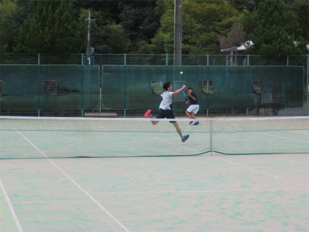 103日(日)に開催されたダブルス練習会に、本校から15名(男子11名、女子4名)の学生が参加しました。本来であればこの時期は舞鶴テニス選手権大会が開催される予定でしたが、9月中旬に市内で新型コロナの感染者が出たため大会が急きょ中止となり、その代替試合として舞鶴市テニス協会が企画したのが今回のダブルス練習会でした。練習会という名称ですが、実際は通常の大会と同じ形式で試合が行われました。