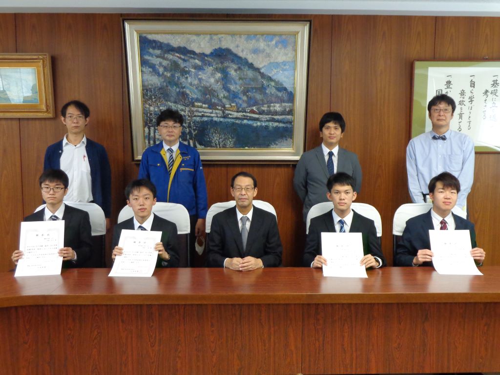 令和4年度舞鶴工業高等専門学校卓越した学生の選考において4名(4M 松森 伶太さん、4E 植原 一希さん、4S 岡本 雄大さん、4C 東 伊織さん)が選ばれ、内海校長から顕彰状を授与されました。