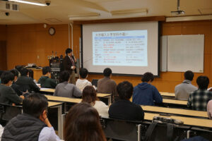 12月4日 2023 学生活動 合同学校説明会を開催しました。 12月2日(土)に合同学校説明会を開催しました。これは、進路選択に向けて大学、専攻科の情報取集と学習意欲の向上を目的としたイベントで、本科3、4年生を中心に学生115名、保護者32名の参加がありました。参加者は、大学11校のうち希望する2校と舞鶴高専専攻科の説明を聞くことができ、大学教員の説明にメモを取るなど熱心に耳を傾けていました。 特に4年生にとっては本格的な進路活動シーズンのスタートとなりました。12月16日(土)、17日(日)には合同企業説明会にあたるキャリアセミナーが開催されます。
