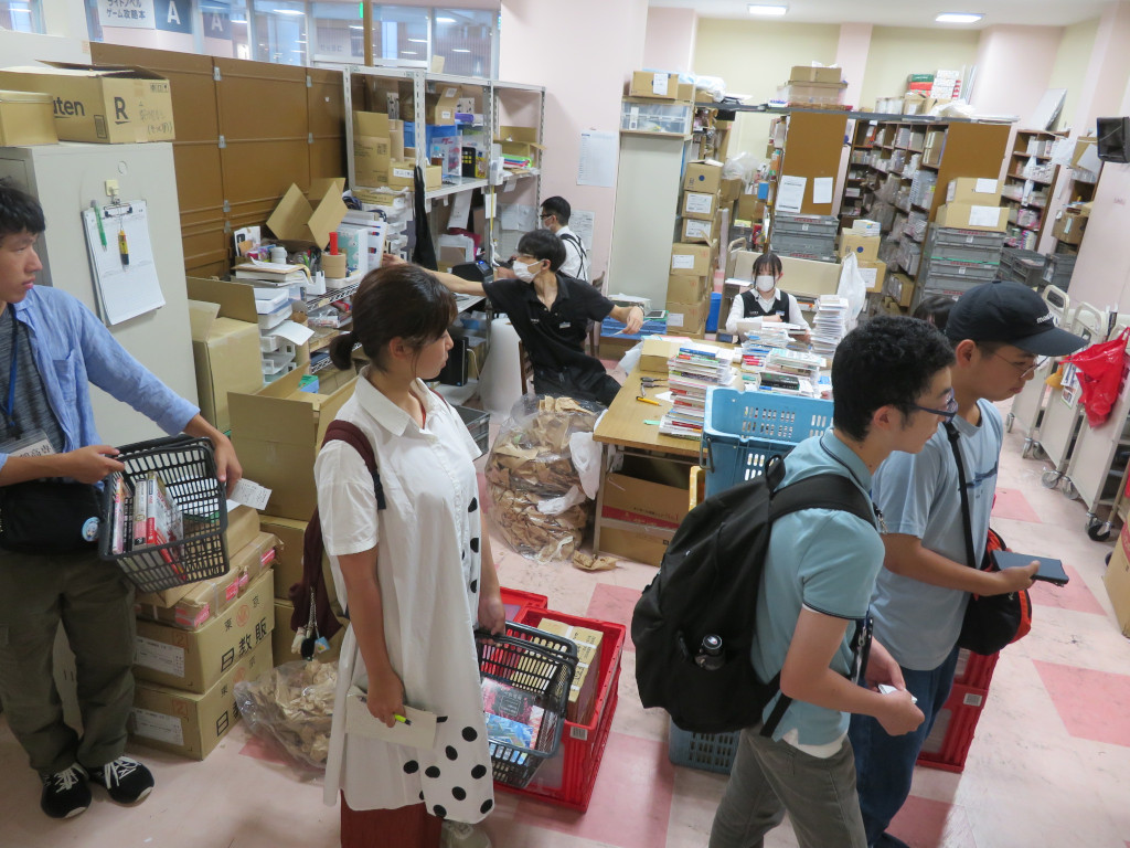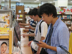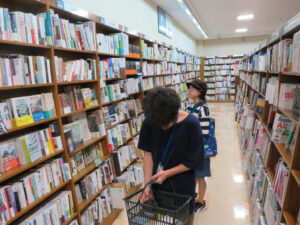 7月13日(土)に、各クラスの図書委員と留学生代表者でブックハンティングを実施しました。ブックハンティングとは、学生の視点から、読みたい本や参考にしたい専門書等を、本校図書館の蔵書とするために直接学生が書店店頭で選ぶイベントです。なお、購入の可否については、学術情報センター運営委員会委員(教職員)による審査があります。以前は毎年実施されていましたが、コロナ禍や予算不足の影響でここ数年は実施できておらず、今年度は5年ぶりに復活することができました。