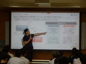 令和7年9月25日(木)、文部科学省が行うアントレプレナーシップ推進大使派遣制度を利用し、1年生を対象に講演会を開催いたしました。