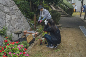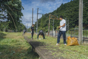 毎年春・秋の活動に参加しており、今回は松尾寺駅舎周辺を重点的にゴミを拾い、草刈り、草集めをしました。