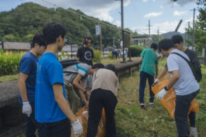 9月27日(土曜日)に、学生会メンバーと有志の学生40名が、地域の皆様とともに松尾寺駅と駅周辺地域の清掃を行いました。