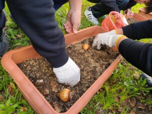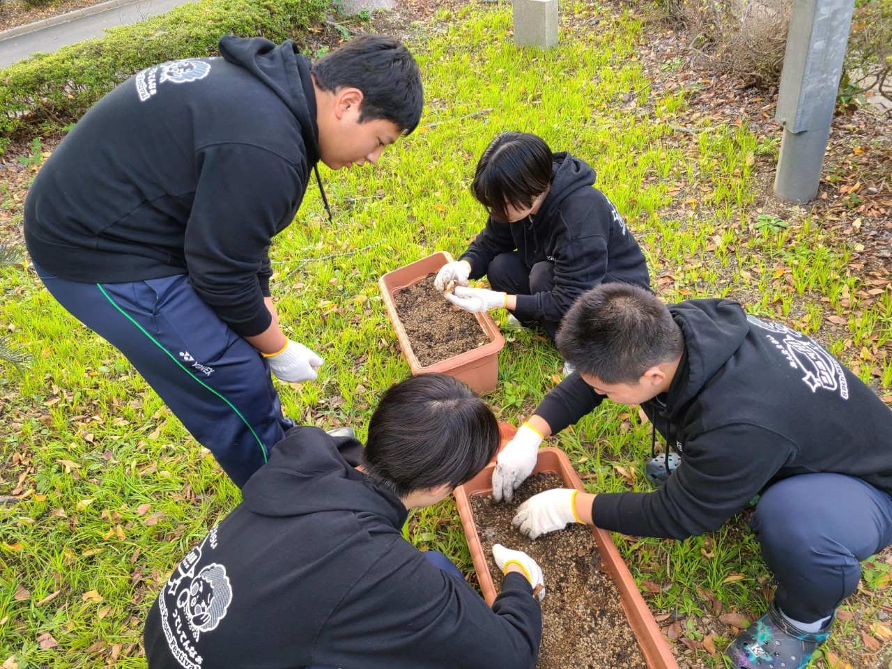 学校緑化推進事業を活用してスイセンの植栽を行いました。