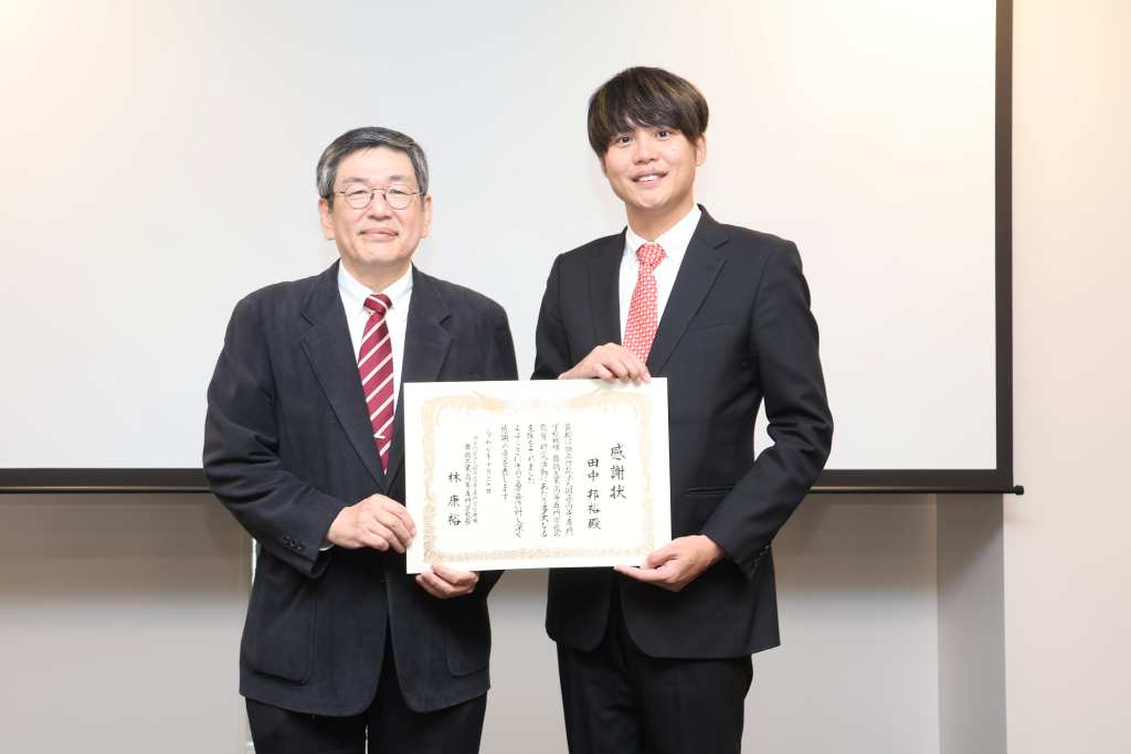 本校卒業生の田中邦裕様に寄附感謝状を授与いたしました。