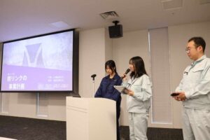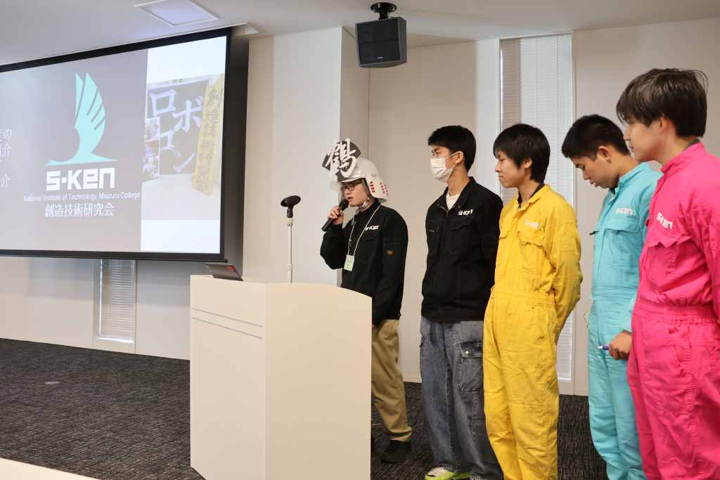また、高専ロボットコンテスト、高専プログラミングコンテスト、高専GIRLS SDGs×Technology Contest、高校生ビジネスプラン・グランプリに応募した本校学生によるプロジェクト発表や意見交換会などが行われ、学生たちは、鴨田舞鶴市長や田中社長をはじめとする来場者と交流を深めました。