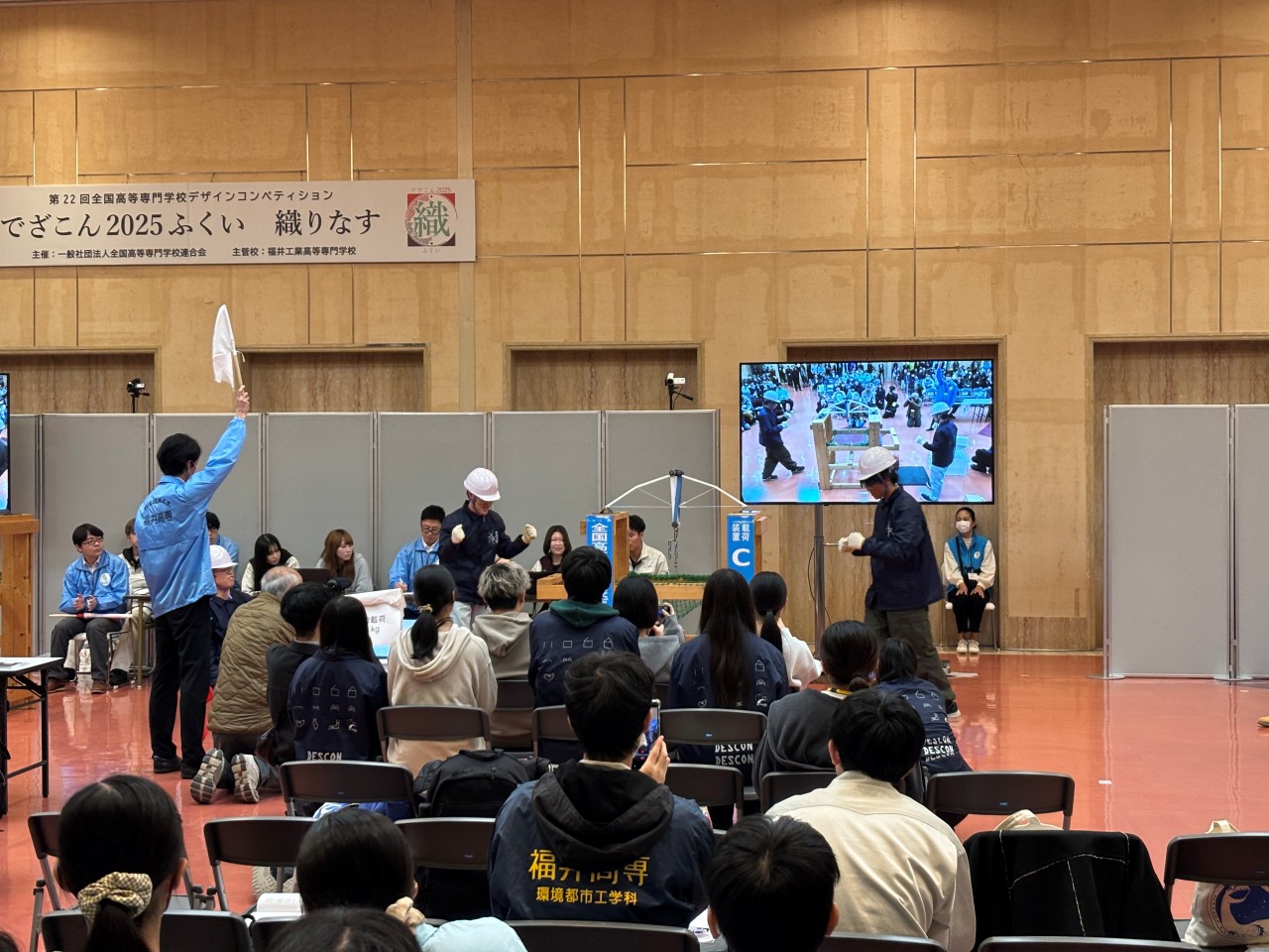 2025年11月8日(土曜日)、9日(日曜日)に、鯖江市嚮陽会館・鯖江市まなべの館で開催された『でざこん2025ふくい』(全国高専デザコン2025 in 福井)に本校学生が参加しました。