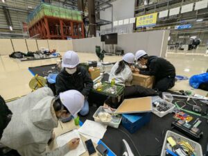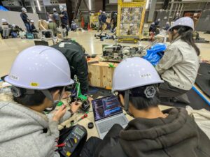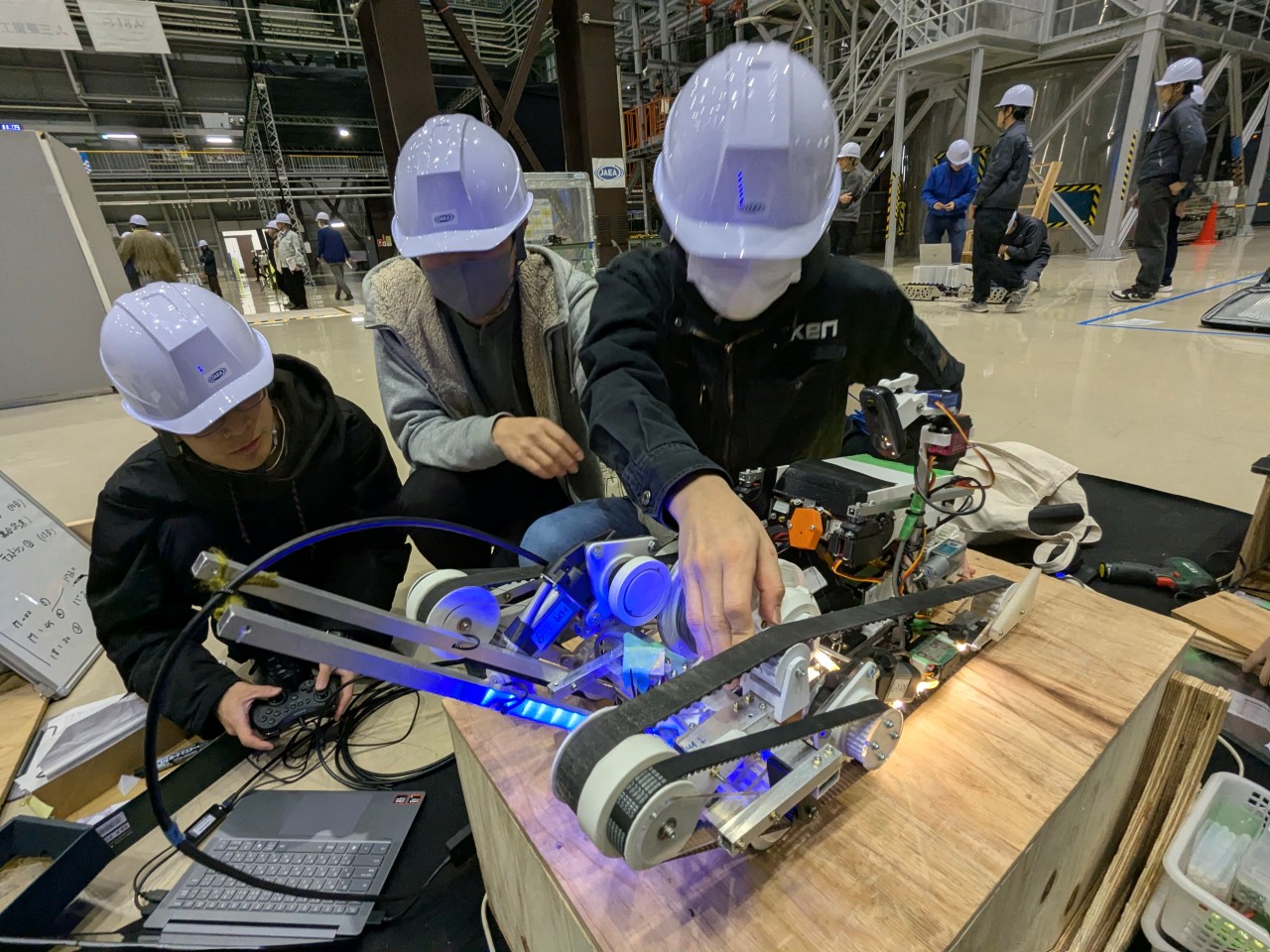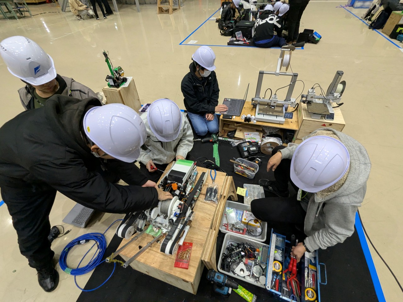 去年と同じ課題となる「福島第一原子力発電所原子炉格納容器(PCV)内部調査」を想定したものです。遠隔操作によりロボットを操縦し、対象物の回収を行うものでした。カメラ映像のみを用いた遠隔操作によってロボットを操縦し、対象物の回収を行いました。競技開始後はリトライができない一発勝負である点が大きな特徴であり、 高い操作性と信頼性が求められる競技となっています。