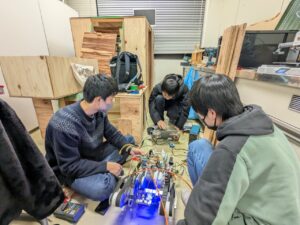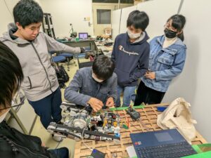 本チーム(まいづる)は、機械工学科・電気情報工学科・電子制御工学科に所属する4年生で構成され、学科の枠を越えた協力体制のもと大会に挑みました。昨年度に続く2回目の出場となり、設計・製作・制御技術の向上に加え、チームとしての連携力も高めた成果を示すことができ、今回の受賞につながりました。なお、本大会で製作したロボットに関する制御プログラムの一部は、GitHubを通じて公開しています。