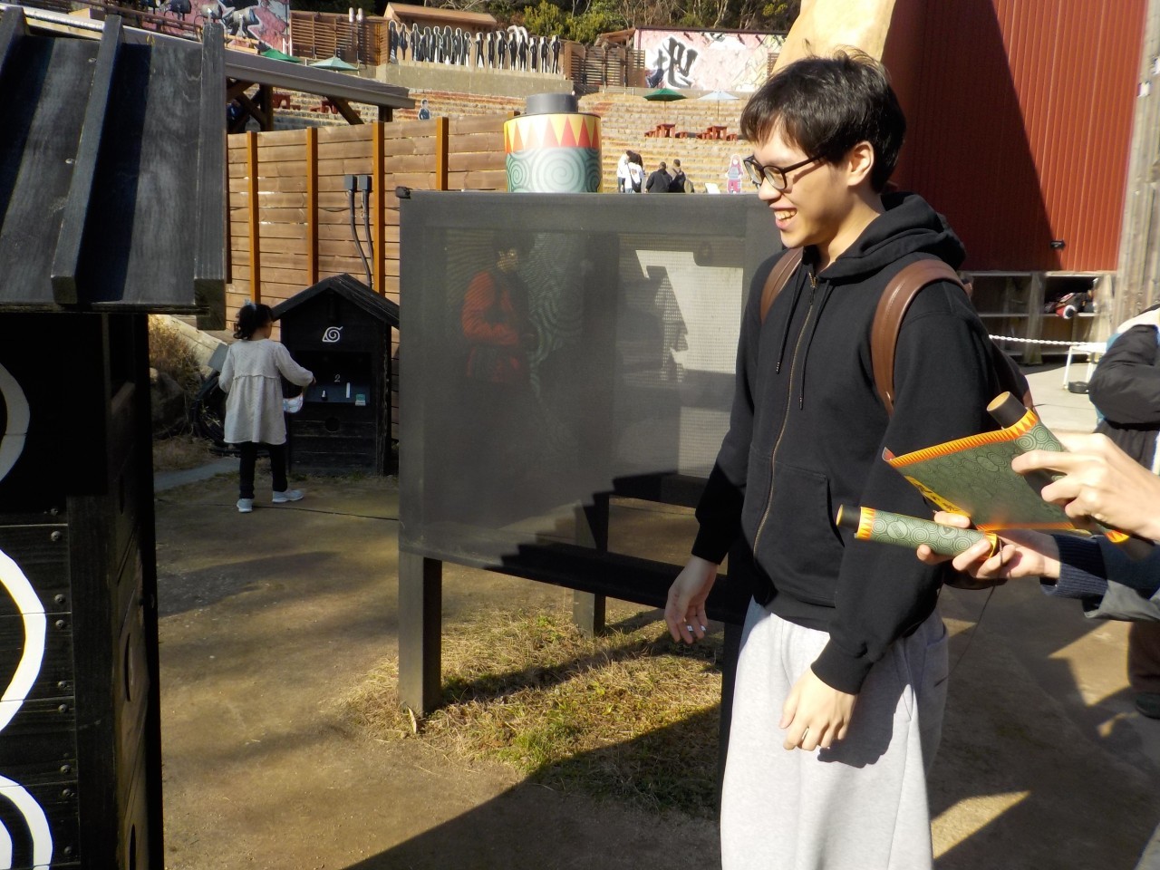 昼食後は、兵庫県立淡路島公園アニメパーク「ニジゲンノモリ」を訪れました。ここは日本の漫画・アニメ、公園の自然、そしてテクノロジーを融合した施設です。世界的人気作品「NARUTO -ナルト-」の世界観を再現したアトラクションでは、留学生同士が協力してミッションに挑戦し、交流を深めながら日本のアニメ文化の魅力を体験しました。
