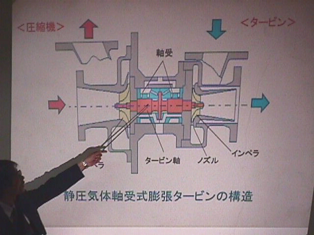 静圧あるいは動圧気体軸受と磁気軸受のハイブリッド形式の膨張タービンについて、開発した膨張タービンの構造と性能、液体窒素製造装置や食品凍結装置への応用、5軸制御磁気軸受の場合との性能比較、常温回転試験や低温回転試験の結果等について紹介。