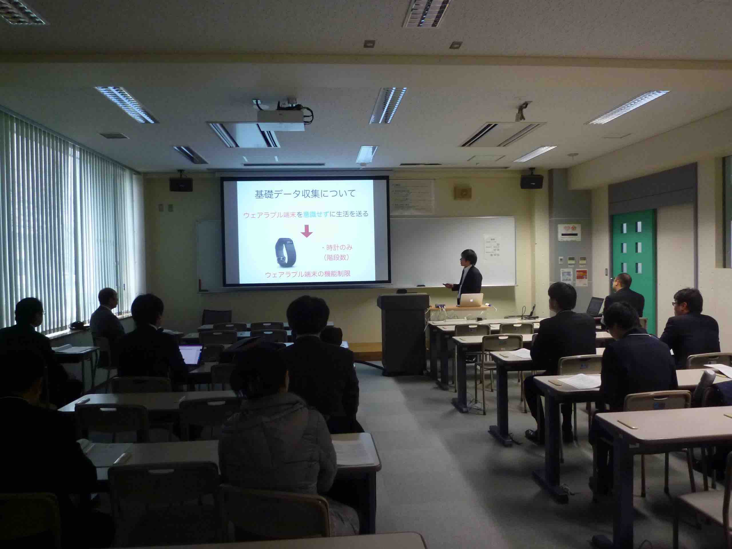 今年度は、「舞鶴市におけるウェアラブル端末を用いた身体活動データ収集・解析支援システムの構築」という題目で口頭発表を行い、発表後、活発な質疑応答を交わしました。また、「地域志向科目「創造工学」の取り組みについて」という題目でポスター発表も行いました。