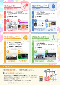 - 台風の接近等による荒天の場合など、オープンキャンパス実施が困難と見込まれる場合には、ホームページで中止等のお知らせします。
