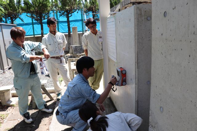 6月1日(金)から6月3日(日)の3日間にわたり、滋賀県メンテナンス技術者養成協議会主催の「滋賀県メンテナンス技術者養成講座」を開催しました。この講座はe+iMec講習会【基礎編(橋梁点検)】に基づいた内容で、滋賀県のインフラ設備のメンテナンスを担える人材を産官学の連携により育成することを目的としています。この度の講習会は(一社)滋賀県建設業協会所属の会員企業からの参加で、(株)コスモ、(株)大翔、(株)石宗建設、オオサワ(株)、(株)アズマ、山甚建設(株)、奥儀建設(株)から計7名が受講しました。講習会では、1日目にiMecで全国各地から収集した橋梁の劣化部材を用いた体験型学修に加え、維持管理計画の立案演習を行いました。2日目は滋賀県内の橋梁での現場実習、3日目にiMecで非破壊検査の実習を行いました。受講者からは、事前学習をしたことでより理解ができた、橋梁に関心が出てきた等の感想がありました。