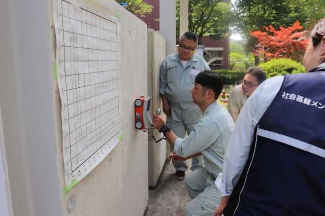 6月21日(木)と6月22日(金)の2日間にわたり、行政機関に所属する技術者を対象に、e+iMec講習会【基礎編(橋梁点検)】を開催しました。この度の講習会は、京都技術サポートセンター 、福知山市、宮津市、中丹東土木事務所から計5名が受講しました。講習会では、全国各地から収集した橋梁の劣化部材を用いた体験型学修に加え、維持管理計画の立案演習、舞鶴市内橋梁での現場実習、非破壊検査の実習を行いました。受講者からは業務に活かせる、橋梁の基本的な事を学ぶことができた等の感想がありました。