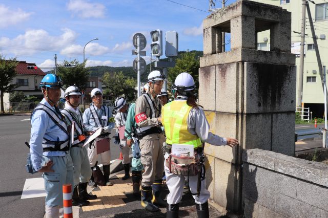 9月6日(金)から8日(日)の3日間にわたり、社会基盤メンテナンス教育センター及び舞鶴市内橋梁現場においてe+iMec講習会【応用編(橋梁点検)】を開催しました。外部講師として橋梁点検のエキスパートである5名の講師の方にご協力いただきました。また本講習会は平成29年2月に国土交通省登録資格となりました「橋梁点検技術者」の認定講座となっています。今回の講習会では民間企業(株)三東工業社、田中シビルテック(株)、扇コンサルタンツ(株)、(有)ダイキ開発、(有)神輝興産、たち建設(株)、(株)森エンジニアリング、行政機関宮津市から計9名が受講しました。eラーニングによる事前学修および3日間の講習会では橋梁点検実務に即した、舞鶴市内橋梁での現場点検演習と点検調書作成・発表を行い、学修到達度確認試験(橋梁点検技術者認定試験の一部を兼ねる)を行いました。受講者の方からは、たくさんの人と交流もあるし知識も増えた、知識が深まり業務に役立つとのご意見をいただきました。