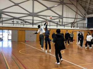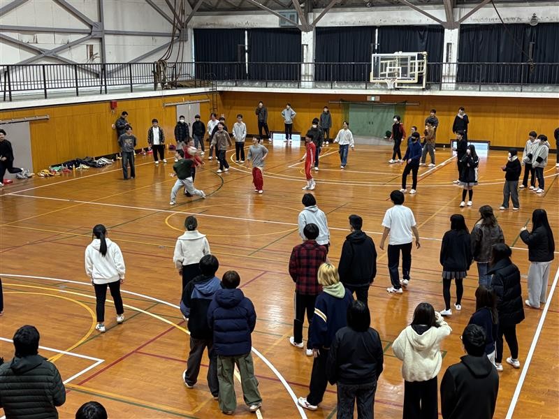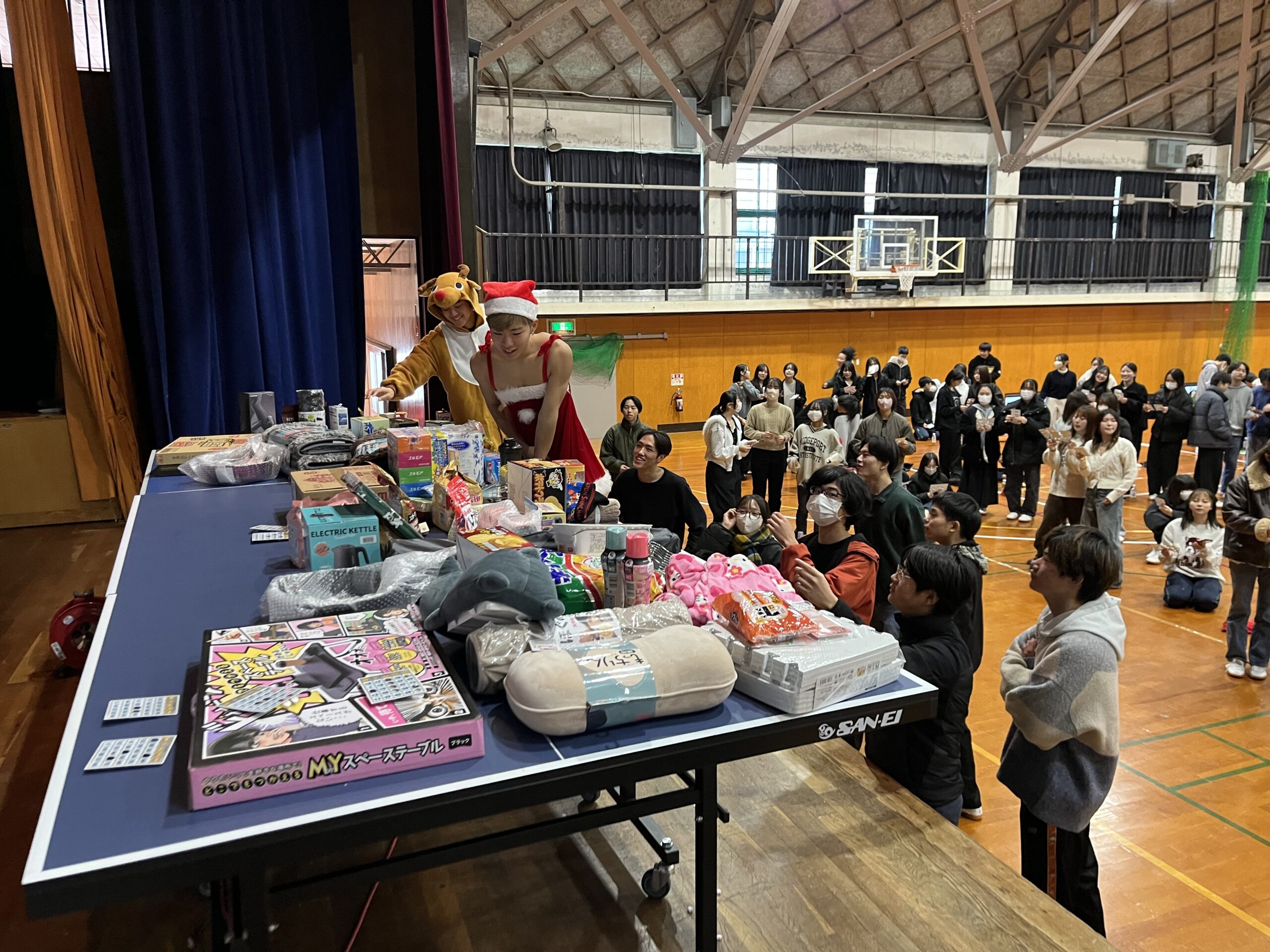 午前中は第一体育館にて〇×クイズ、学科対抗ドッヂボール、BINGO大会を実施し、学年や学科の垣根を越えて多くの寮生が参加し、大いに盛り上がりました。特に〇×クイズでは、1問1問の答え合わせのたびに歓声が上がり、ドッヂボールでは白熱した試合が繰り広げられました。また、BINGO大会では最後まで会場が一体となって楽しむ様子が見られました。
