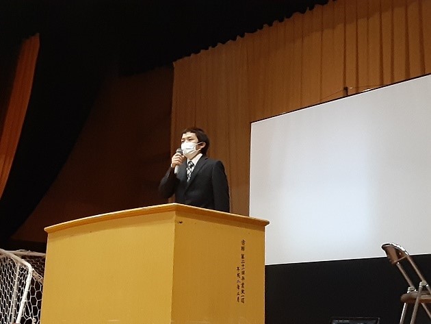 そうした日頃の食生活を見つめ直してもらうため、本校の食堂を運営していただいている株式会社 魚国総本社の管理栄養士である水谷 絵里夏氏に、「健康的な食生活していますか?―充実した学校生活のために―」と題して、ご講演をいただきました。