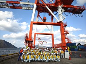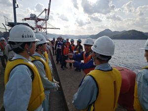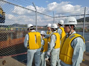 毎年建設システム工学科4年都市環境コースの学生を対象として、国際埠頭周辺の整備工事を見学させていただいており、今年度は堆積土砂撤去工事と埠頭内の見学をさせていただきました。