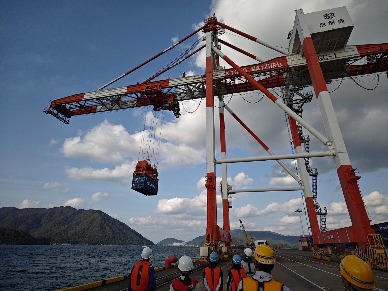今回の見学では、舞鶴における国際コンテナの上げ下ろしをする舞鶴国際埠頭における地盤改良工事(SCP工法)の現場見学を企画いただきました。