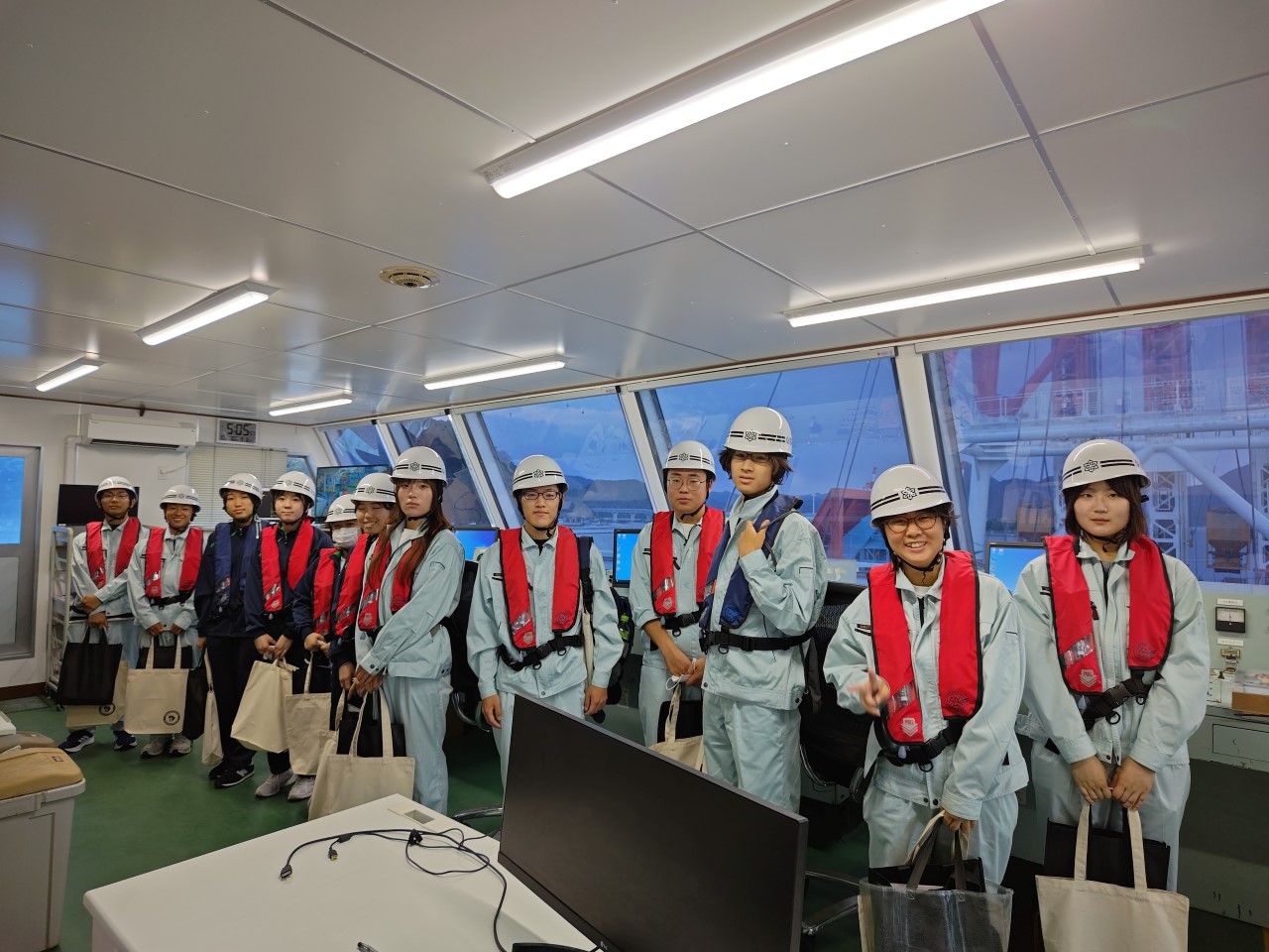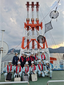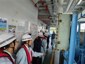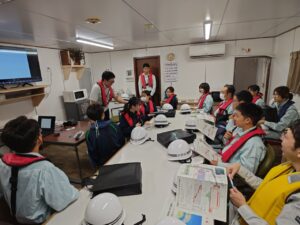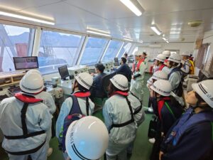 1~3年生の12名の学生が参加し、SCP作業船の大きさに驚いたり、「どういった作業をしているのか」、「どういった働き方をしているのか」などの質問を積極的にしたりするなど、貴重な機会を存分に楽しんでもらえたかと思います。