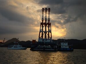 本州で稼働しているSCP作業船は2隻しかなく、そのうちの1隻の工事現場を見学することができるという大変貴重な機会に恵まれました。