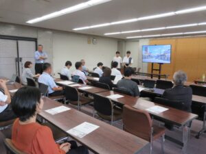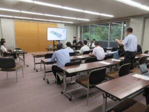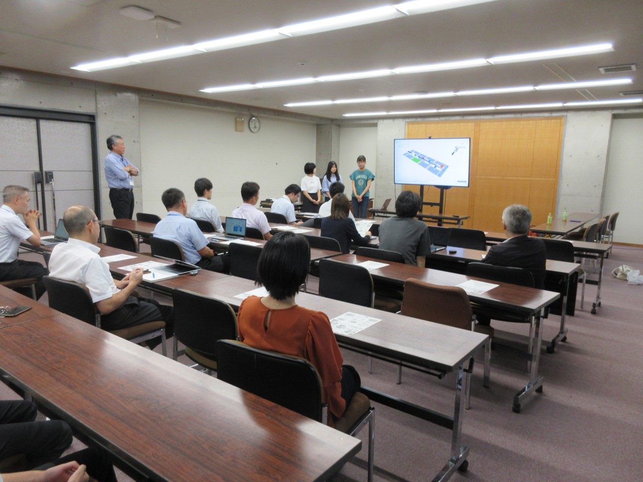 令和7年9月18日(木)15:30~17:00において、舞鶴市役所別館6階大会議室で建設システム工学科4年都市環境コース学生が前期に実施した建設設計製図Iの課題「舞鶴市のまちづくり」の成果発表を行いました。