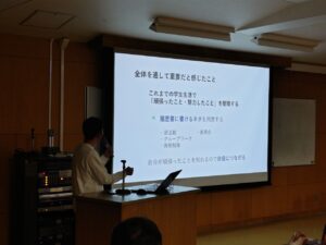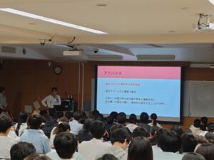 各人10分という短い時間でしたが、経験を伝えるというだけではなく、着目した点や後輩たちに向けたメッセージなどを絡めたとてもよい発表をしていただき、後輩たちもメモを取りながら熱心に発表を聞いていました。