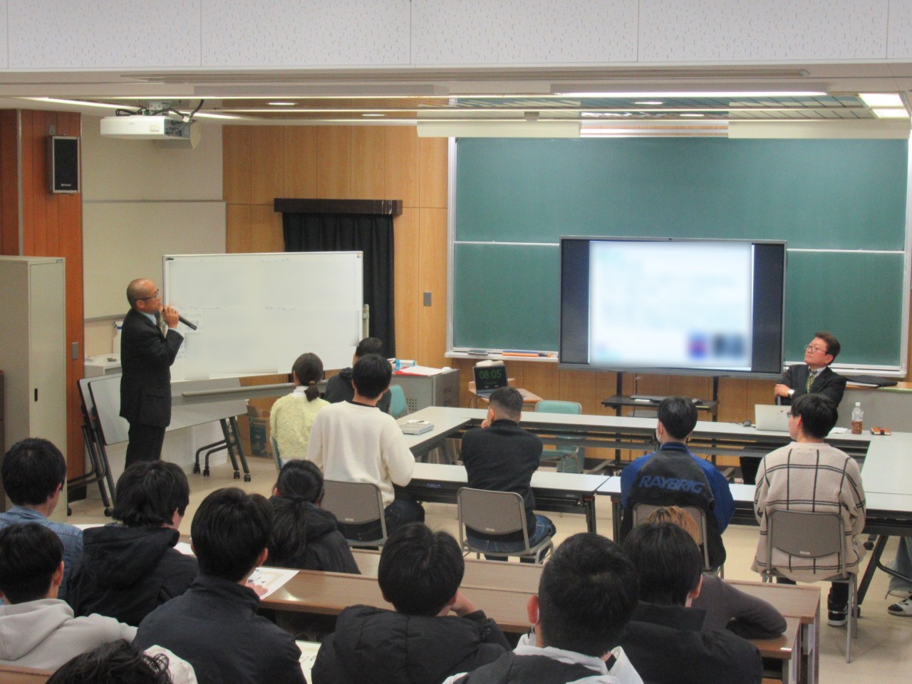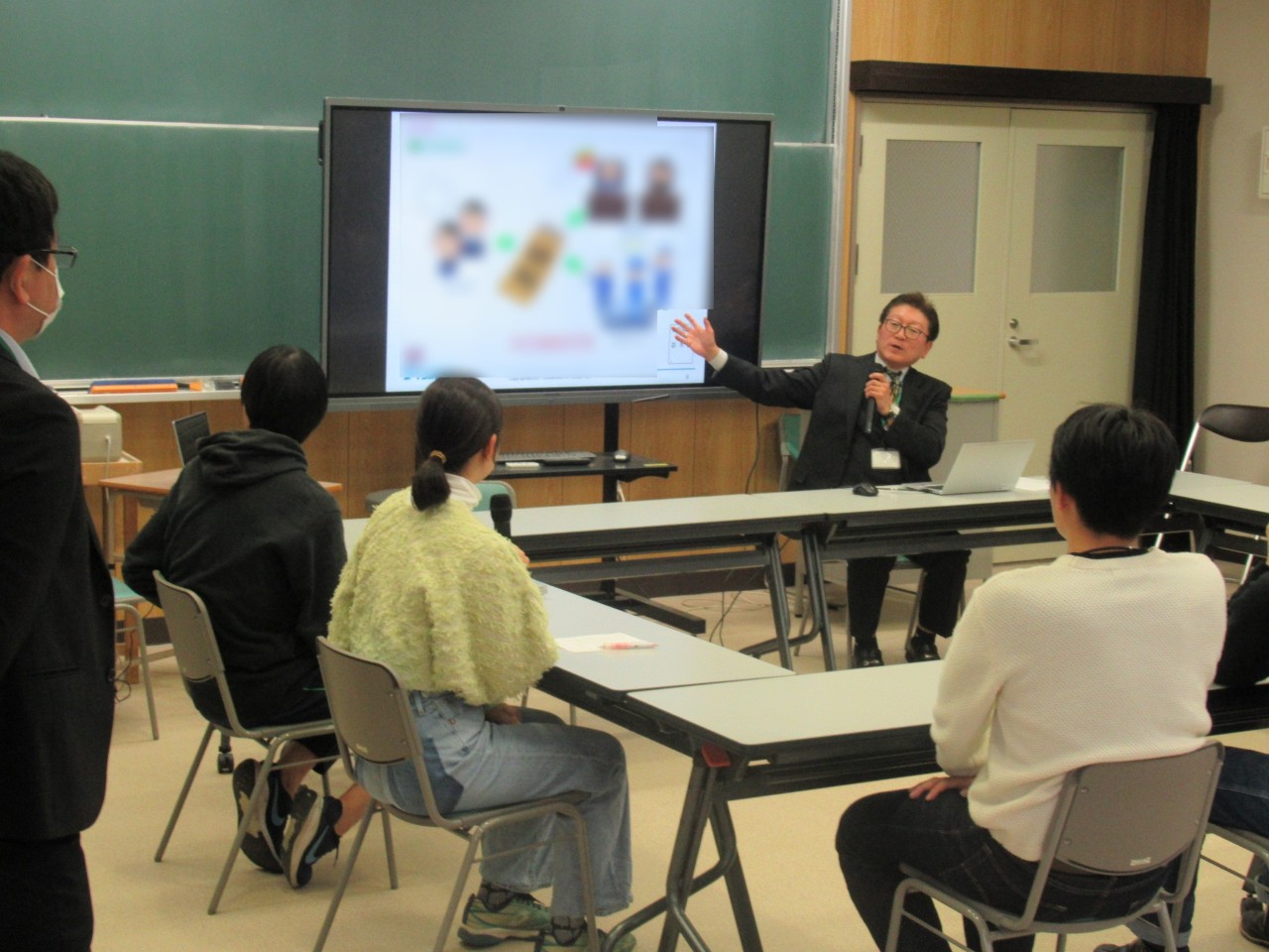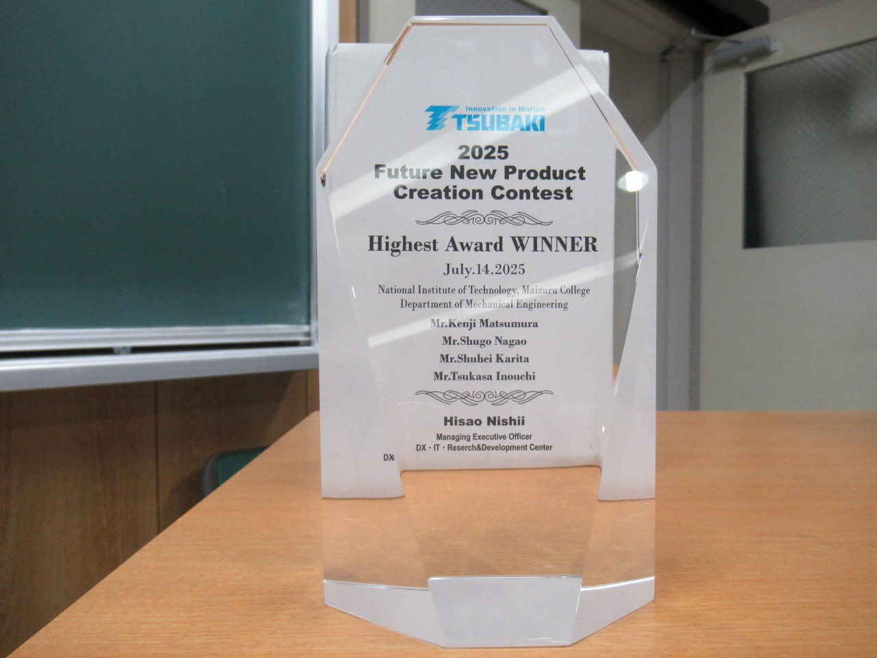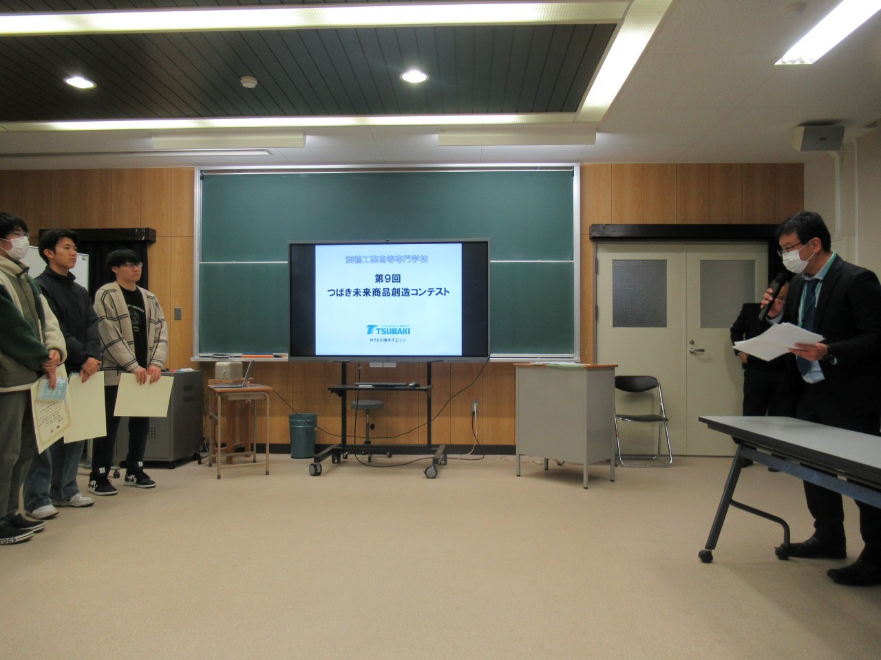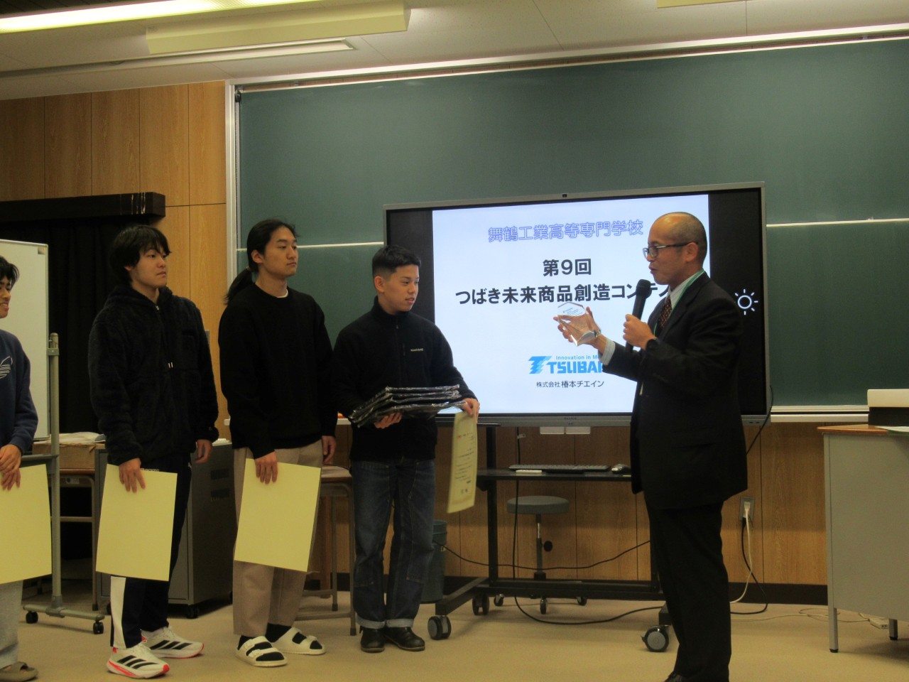 2025年12月3日に「第9回つばき未来商品創造コンテスト」(授業協力:株式会社椿本チエイン)の表彰式が行われました。「ゴミ問題」について、「人・社会を幸せにする未来新商品の創造」というテーマで優れた商品提案を行った4つの班が表彰されました。表彰式後は、各班の代表者が集まり、「人・社会を幸せにする商品に自動化をどのように活用するか?」というテーマで討論会を行いました。