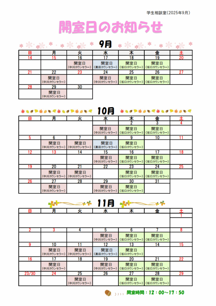 カウンセラーの先生方の来校日